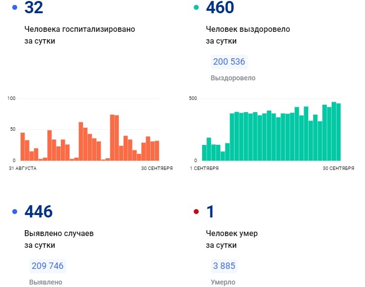 Зафиксирована смерть одного из пациентов. Всего с начала пандемии скончались 3885 жителей региона. В сентябре летальных исходов из-за коронавируса и его последствий было 5, сообщает ИА «СеверИнформ».