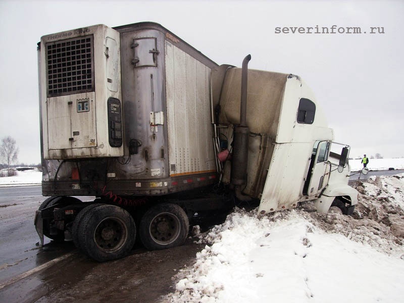 Столкновение двух фур под Череповцом спровоцировало пробку на трассе
