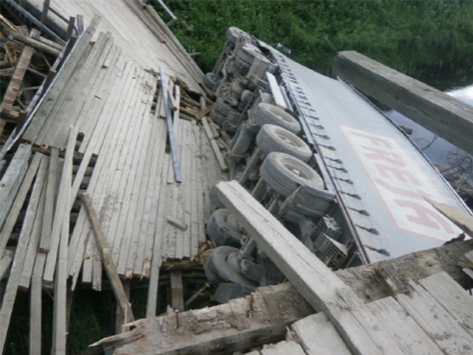 Оказалось, что виновник ЧП - водитель грузовика "Вольво" с нагруженным пиломатериалами прицепом. Несмотря на наличие запрета на движение автомобилей массой свыше 3,5 тонны, мужчина проехал по мосту, отчего тот рухнул.