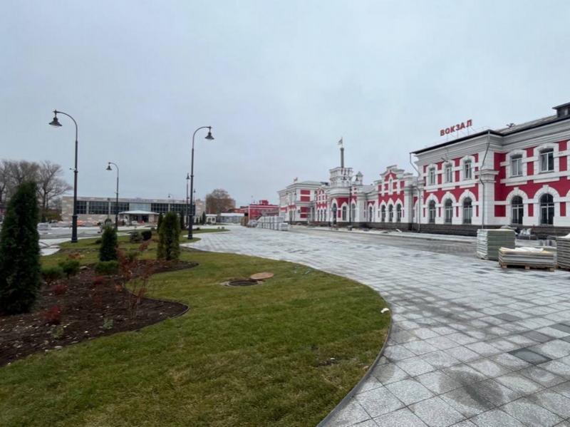 А сквер на привокзальной площади уже обретает новый вид. Сейчас здесь завершают укладывать плитку, смонтировали все фонари, посажены растения, постелены газоны. На этой неделе появятся скамейки, урны и другие малые архитектурные формы, сообщает ИА «СеверИнформ».