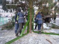 В Вологде устанавливают главную новогоднюю елку. Напомним, пушистую красавицу привезли из лесхоза в Вологодском районе.
