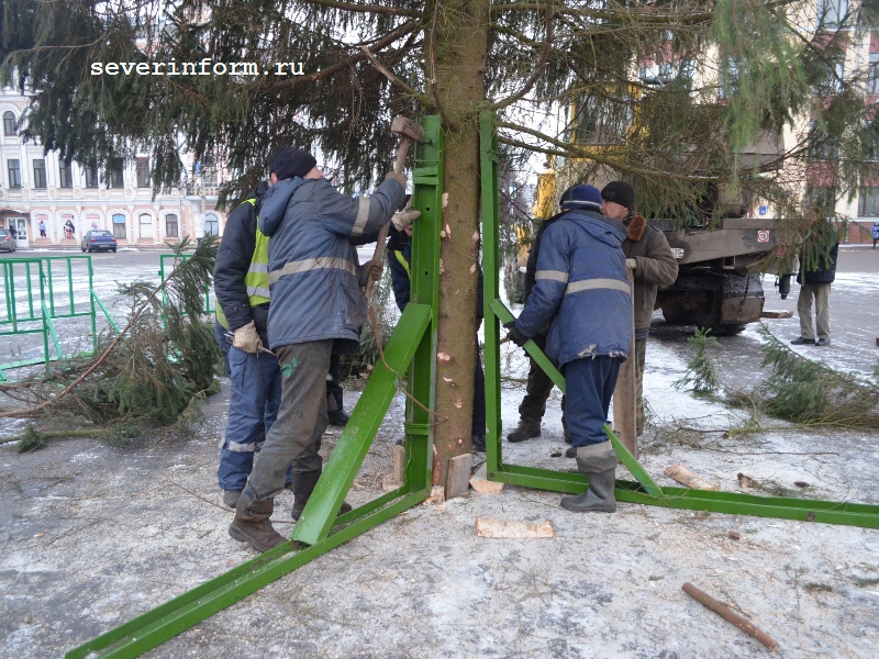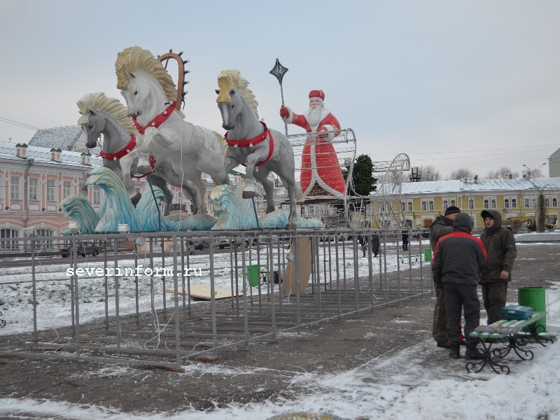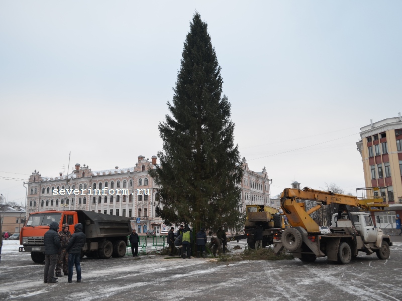 Дерево традиционно установили на площади Революции. Помимо этого, рядом с елкой поставили объемную фигуру Деда Мороза на тройке лошадей. Как сообщает ИА «СеверИнформ», воскресенье, 1 декабря будет решаться вопрос, когда ель начнут украшать.