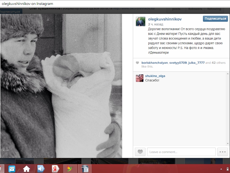 Олег Кувшинников поздравил свою маму и всех вологжанок с Днем матери