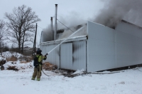 Пожар в металлическом ангаре на улице Крюк, дом 3 (неподалеку от Козленской, 136) начался сегодня в девятом часу утра.