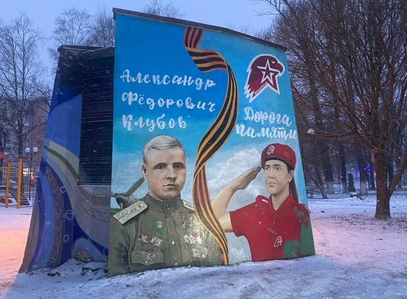 На здании изображены дважды Герой Советского Союза Александр Клубов и вологжанка, юнармеец Анна Суматова, уточнили в правительстве. Рисунок передает преемственность поколений, выражает патриотизм и желание сохранить историю.