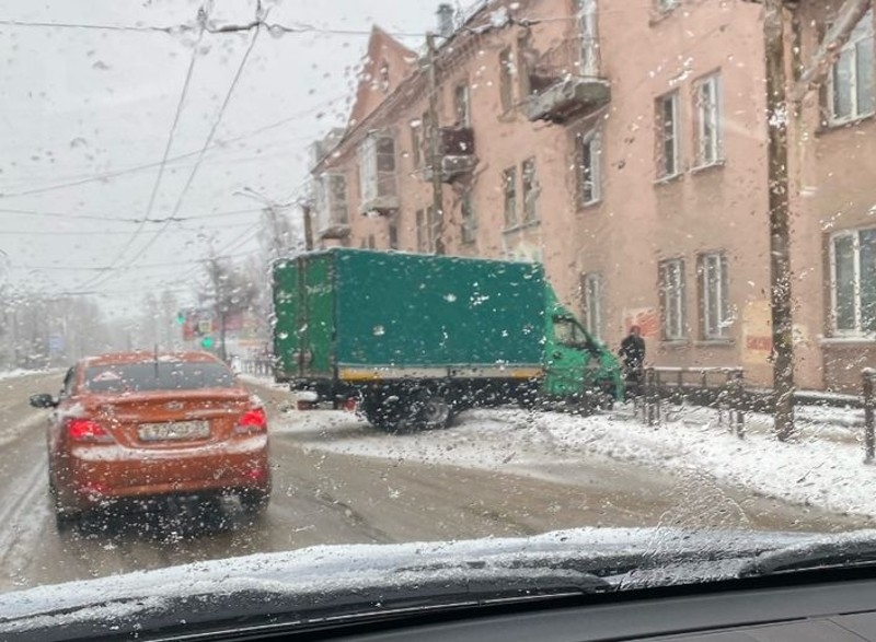 В Вологде на улице Герцена грузовик влетел в ограждение