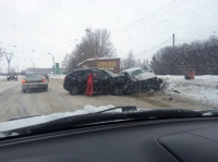 Череповце. ДТП случилось утром в субботу, 31 января. На Северном шоссе столкнулись два автомобиля - Volkswagen Polo и Renault Koleos, сообщает