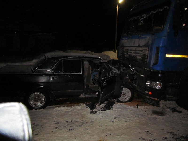 По информации ГИБДД, 51-летний водитель ГАЗ-31029 не справился с управлением автомобиля, «Волгу» вынесло на встречную полосу, где она влетела под грузовой МАЗ.