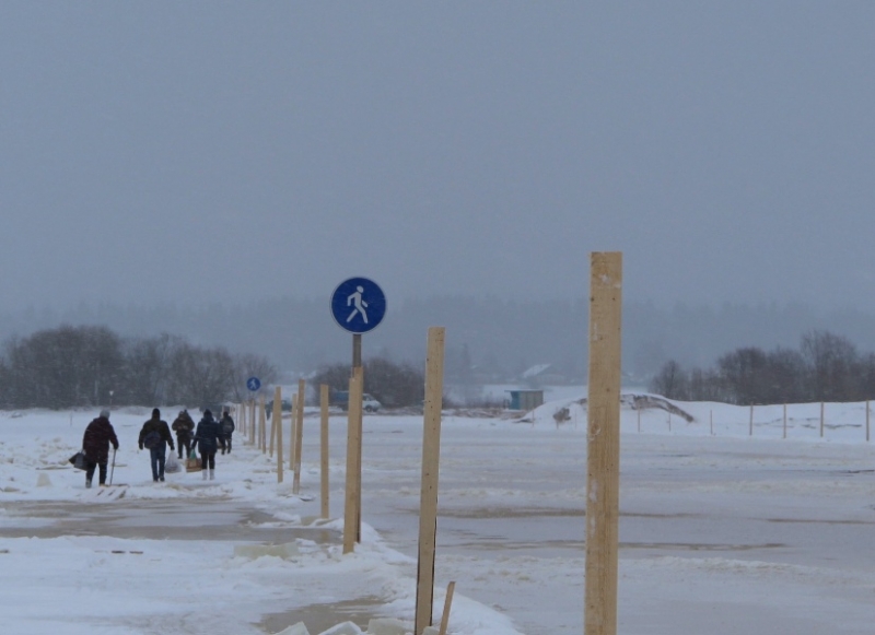 Наступившие в конце января морозы, позволили создать первую в этом году переправу через реку Северная Двина. Пешеходная дорожка появилась 27 января. С этого момента специалиста администрации района начали наращивать лед для автомобильной переправы.