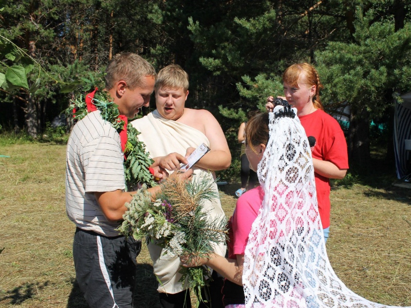 В лагере прошел свадебный «Древнерусский обряд хомутания» молодоженов