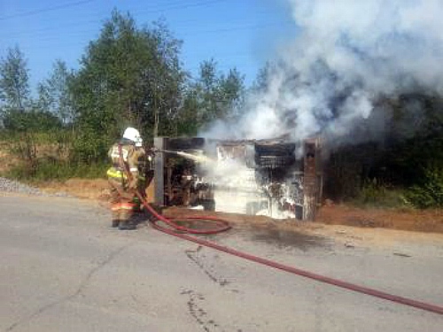 кювет. После этого машина загорелась. Дорожное происшествие случилось в 10:20 в четверг, 31 июля, на 11 километре Северного шоссе города металлургов.