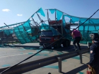 Инцидент произошел на трассе М-8 "Холмогоры" водитель грузовика Volvo наехал на балку надземного пешеходного перехода, который обрушился на проезжую часть.