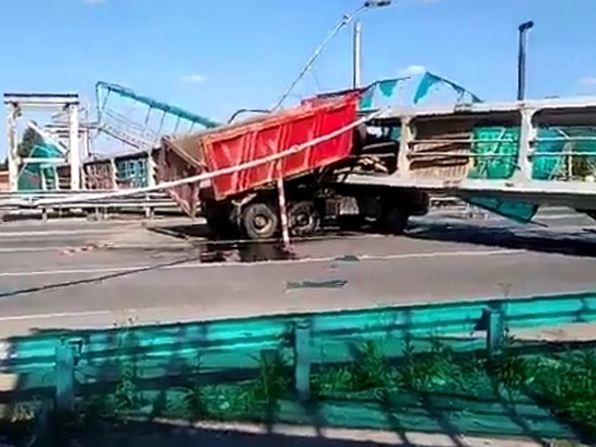 Причиной ЧП стал самосвал, который въехал в опору сооружения на Ярославском шоссе.