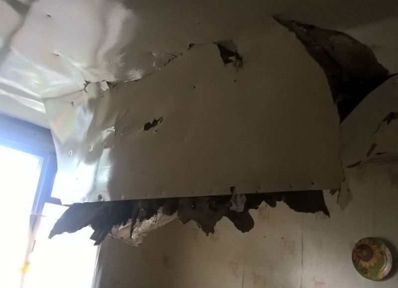 Но, если пока никто не пострадал, то не факт, что этого не произойдет в дальнейшем, особенно, учитывая погодные условия. Дожди могут промыть потолки в других квартирах. В доме на данный момент проживает 44 человека.