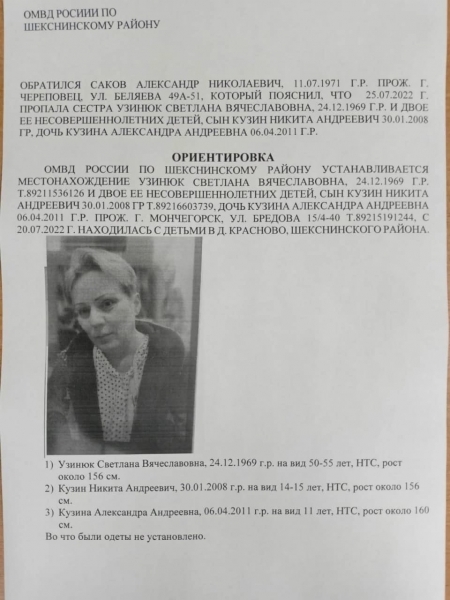Следственный комитет возбудил уголовное дело. Есть подозрения на убийство. Семья отдыхала в деревне Красново Шекснинского района. Неожиданно женщина 52 лет, мальчик 14 лет и девочка 11 лет пропали. Местные жители, а именно брат, заявили в полицию.
