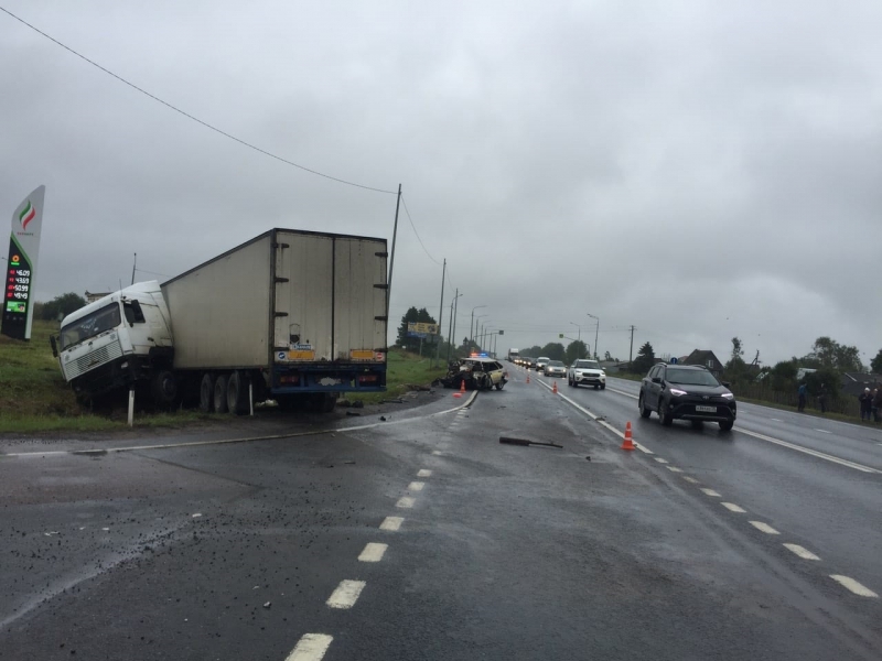 По предварительной версии виноват 29-летний водитель МАЗа. По мнению инспекторов ГИБДД, он допустил занос транспортного средства и выскочил на встречку, где столкнулся с ВАЗ-2109.