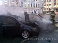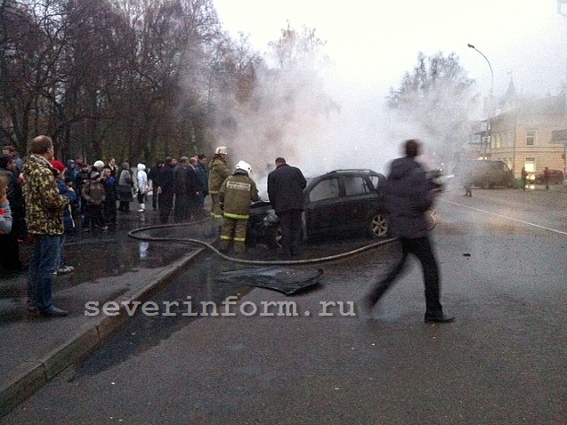 Автомобиль взорвался в центре Вологды, еще один загорелся