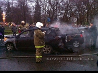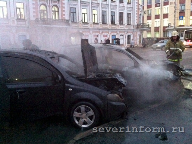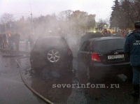 "Toyota RAV 4" взорвалась в центре Вологды, от него пламя перекинулось на "Chevrolet Aveo"
