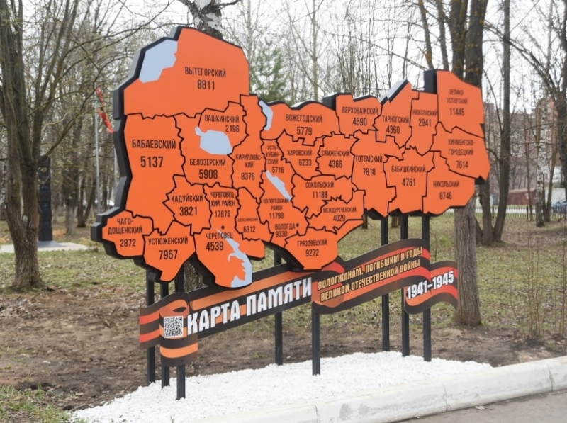 Карту Вологодской области, посвящённую погибшим на войне землякам, установили в «Парке Победы» в Вологде