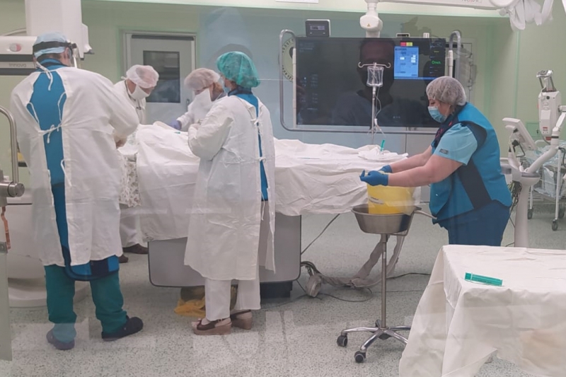 В это время прибыла еще одна реанимационная бригада. В ее составе были врач Юрий Кутье, фельдшеры Сергей Суворов и Владимир Харинский. В ходе осмотра снова остановилось дыхание, произошла клиническая смерть. Вновь прошли эффективные реанимационные мероприятия. Пациентку отправили в областную клиническую больницу. На базе медучреждения с 2013 года работает сердечно-сосудистый центр. Операцию проводили на новом ангиографе.