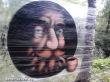 Группа молодых людей растянули между двумя деревьями прозрачную пищевую пленку и нарисовали на ней с помощью пульверизаторов портрет человека. Рисунок имеет размер порядка 3 на 2 метра. Как рассказали корреспонденту ИА «СеверИнформ» очевидцы, смотрится это граффити очень эффектно. Портрет отдаленно напоминает лицо Эрнеста Хэмингуэя.