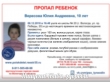 Ещё один ребенок пропал в областной столице. На этот раз в городе разыскивают 10-летнюю Юлю Вересову. Сегодня в 16:40 она вышла из школы №20, которая находится на проспекте Победы, 20, и домой уже не вернулась.