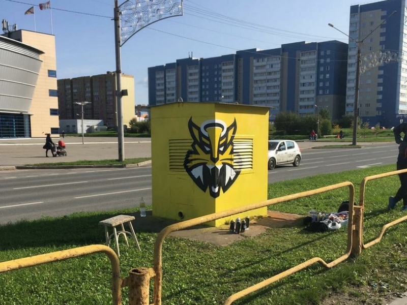 Подобная практика понравилась горожанам, поэтому теперь и другие будки на разделительных газонах заиграли яркими красками. Появились рисунки того, с чем ассоциируется Череповец. Здесь нарисованы силуэты хоккеистов, логотип клуба "Северсталь", пейзажи металлургического комбината, трамвай. Фотографиями в соцсетях делятся мэр города Вадим Германов и гендиректор дивизиона "Северсталь. Российская сталь" Евгений Виноградов.