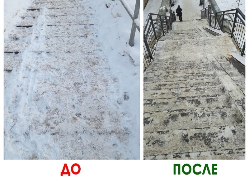 В праздничные выходные после очередных снегопадов подняться и спуститься по лестницам стало практически невозможно. Местные жители окрестили данную беду «вечной проблемой».