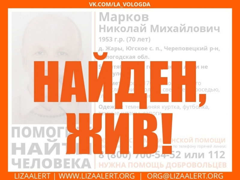 Мужчина хромал и плохо передвигался, не мог далеко уйти — такие вводные дали родные поисковикам. Поэтому они надеялись на быстрый исход поиска. Но дни шли, а отыскать пожилого человека не удавалось. Он пропал вечером 5 сентября возле деревни Жары Череповецкого района. Ситуацию осложняли ливни и холод по ночам. 8 сентября утром сын пропавшего сообщил, что тот сам вышел из леса.