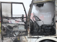 Сейчас пожар потушен. Салон автобуса выгорел полностью.