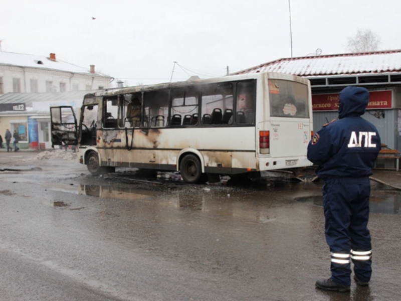 Пассажирский автобус сгорел в центре Вологды (ФОТО)
