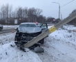 Автомобилист не справился с управлением и выехал в кювет, там машина врезалась в опору линии электропередач.