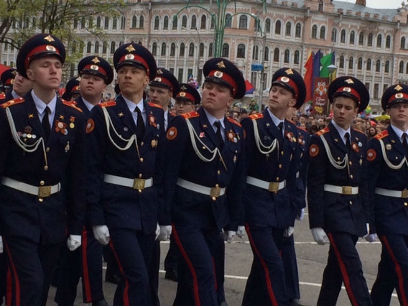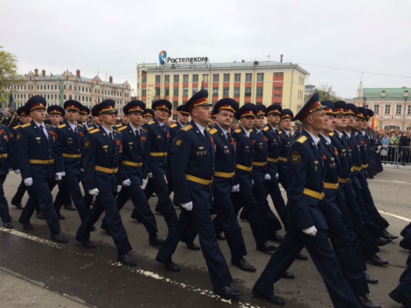 В параде маршем прошли 25 коробок: это военнослужащие частей вологодского гарнизона, парадные расчеты МВД, МЧС, ФСИН и Росгвардии, воспитанники клуба "Меридиан" и школьники.