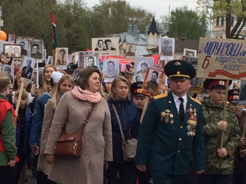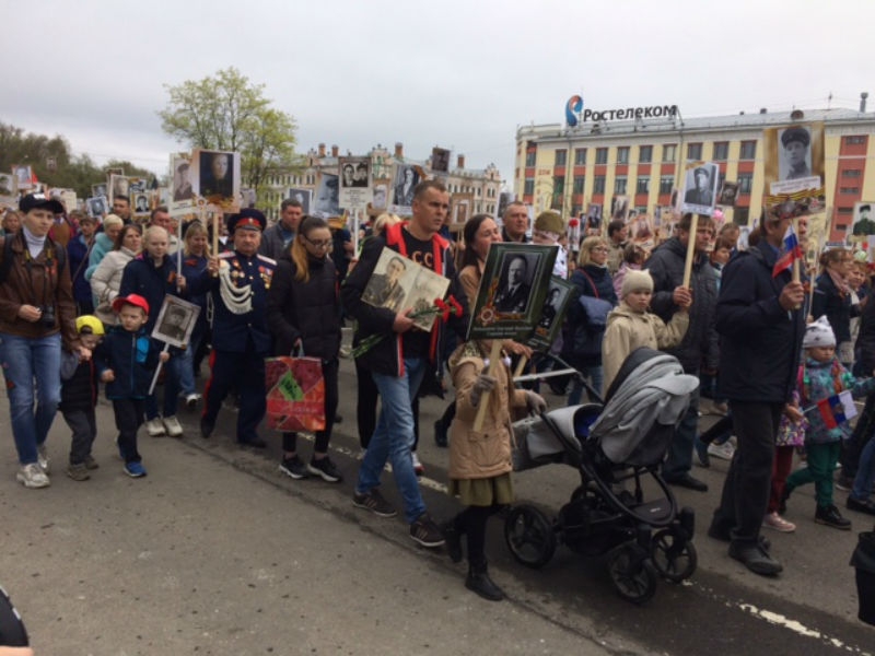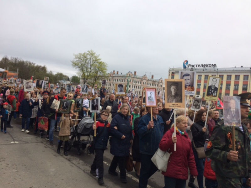 Далее на площадь Революции вошла колонна «Бессмертного полка». По предварительным данным в шествии приняли участие около 10 тысяч вологжан с фотографиями своих героев. Над улицами города поднялась волна защитников Родины, многие из которых не вернулись с разных фронтов. Но сегодня они шли вместе, единой колонной. Глава региона Олег Кувшинников присоединился к «Бессмертному полку», держа в руках портреты своих дедов-фронтовиков: Николая Кувшинникова и Ивана Цикина, сообщает ИА "СеверИнформ".
