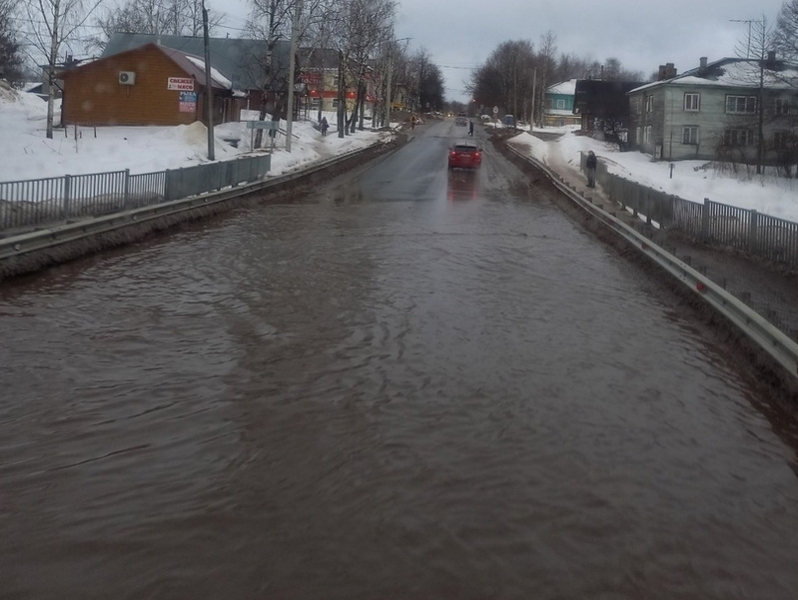 История с подтоплением переправы через ручей Вянг в Вытегре получила неожиданное продолжение. Проезжую часть залило водой в среду, 15 марта. Фото моста...