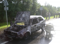 "Автомобиль марки "Volkswagen Golf" загорелся на ходу. Машина ехала неподалеку от поселка Шулма Нелазского сельского поселения. Водитель выскочил из машины и отошел на безопасное расстояние", - сообщили корреспонденту ИА "СеверИнформ".