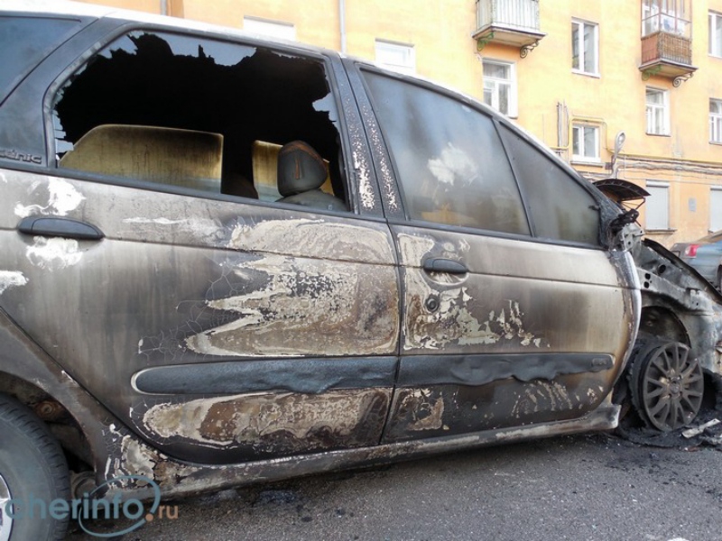 Во дворе на улице Горького подожгли «Renault Megane» Фото:cherinfo.ru