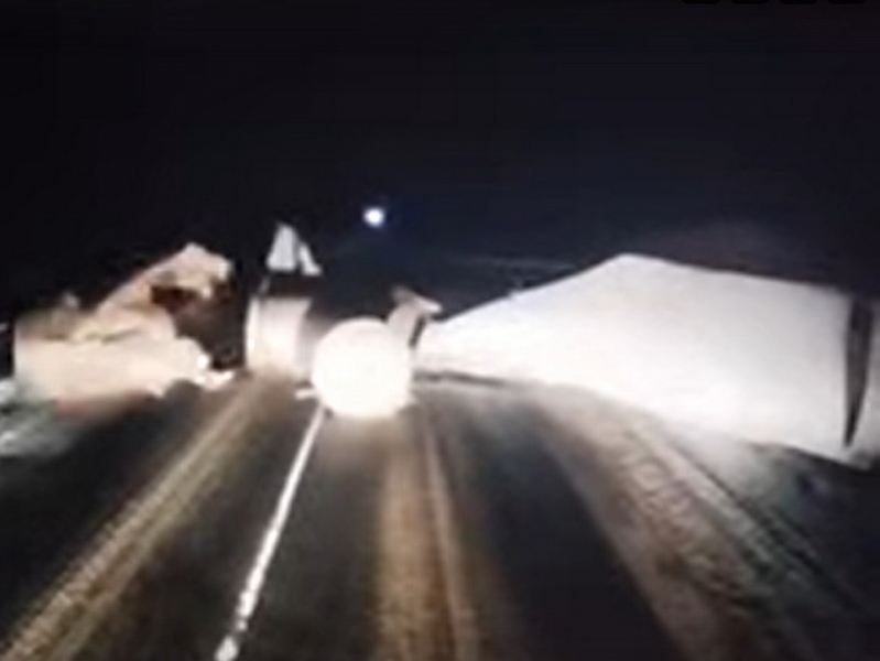 Фура перевернулась и легла поперек трассы (ВИДЕО)