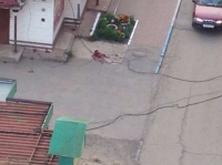 Как отмечают очевидцы происшествия, сначала женщина сидела в окне, свесив ноги на улицу, позже она закрыла окно, однако через несколько минут появилась снова и выпала.