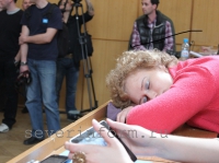 Вологжанка Юлия, которая и писала Тотальный диктант в здании журфака МГУ, призналась, что для нее, как и для многих россиян, Тотальный диктант – способ проверить свою грамотность. «Я давно думала, как это можно сделать, даже собиралась на ЕГЭ по русскому языку, но никак не могла найти возможность», - рассказала она. Школу я окончила 10 лет назад, 5 лет назад – университет, с тех пор русским языком специально не занималась, правил не повторяла, хотя, постоянно применяю свои знания в работе. И к диктанту тоже специально не готовилась, – призналась она. – А теперь мне даже уже и не сам результат важен, хотя, надеюсь, конечно, что он будет хорошим. Важно то, что я снова, как когда-то в школе, писала ручкой на бумаге под диктовку. Эти ощущения с компьютером не сравнить. Сразу начинаешь контролировать каждую букву, каждое слово, знак препинания. Мы - люди вообще перестали в последнее время следить, что и как говорим, по какому поводу, а такой вот диктант – лишняя возможность над этим задуматься». После того, как все писавшие текст поставили в своих работах финальную точку, Тина Канделаки пообещала, что в скором времени выложит в сеть вариант диктанта, который прочтет в свойственной ей манере говорить. "И я надеюсь вы, уже будучи подготовленными, справитесь и с моей личной версией тоже", - улыбаясь заметила она.