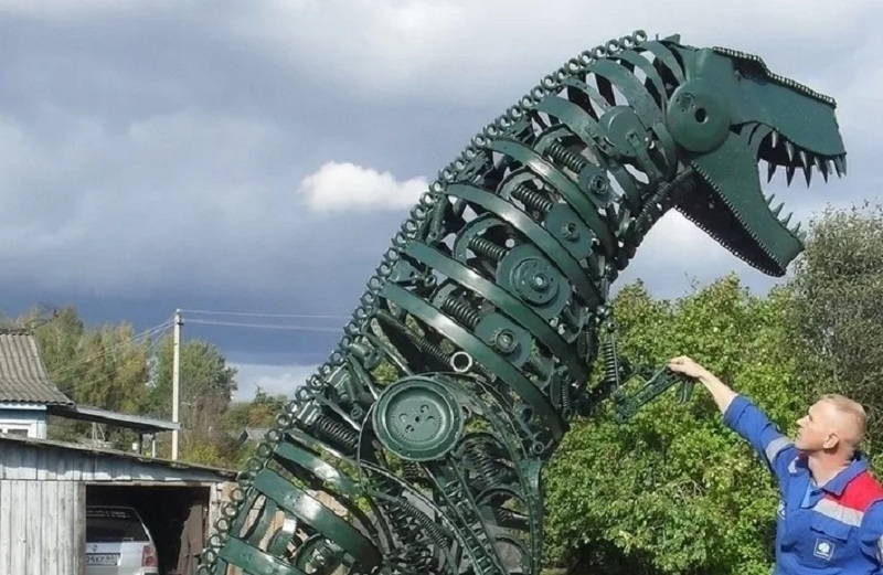 «Динозавр», занявший девятую строчку, был создан в 2019 году. На сайте Туту.ру представлена 3D-модель трицератопса, но, судя по описанию, речь идет и о втором творении Романа Кириллова — тираннозавре. Обе скульптуры собраны из автомобильных запчастей, высота тираннозавра — 3,2 м, трицератопса — около 1,7 м, сообщает ИА «СеверИнформ».