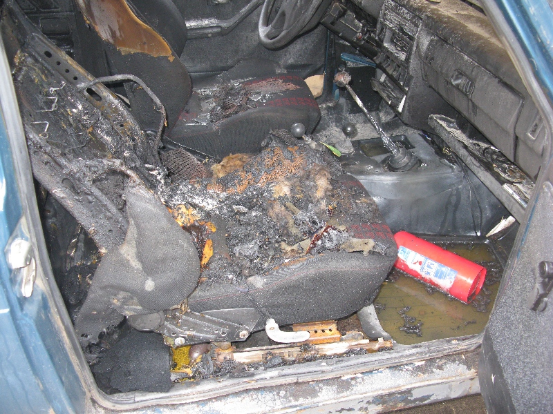 Огонь повредил пассажирское сиденье, дверь и отделку крыши Фото:Областное УМЧС