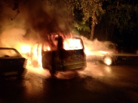 Два микроавтобуса чуть не сгорели за ночь в Вологодской области