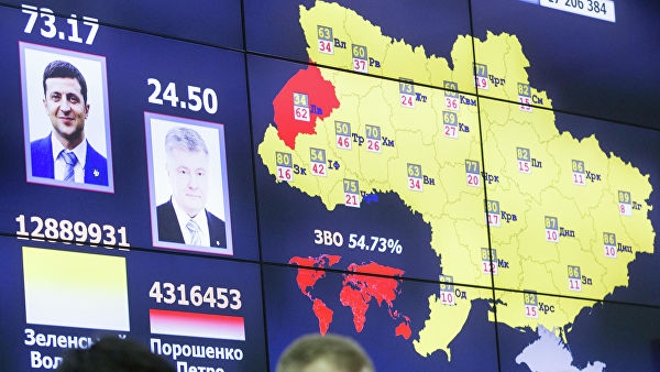 О том, что шоумен Владимир Зеленский побеждает со значительным отрывом, показали еще опросы экзит-полла. Данные подтвердили и первые подсчеты голосов. На сегодня, после обработки 99% бюллетеней, центризберком Украины называет следующие цифры: 73 % голосов от всех проголосовавших жителей страны, отданы за Владимира Зеленского. Петра Порошенко поддержали лишь 24 % избирателей, сообщают РИА Новости.