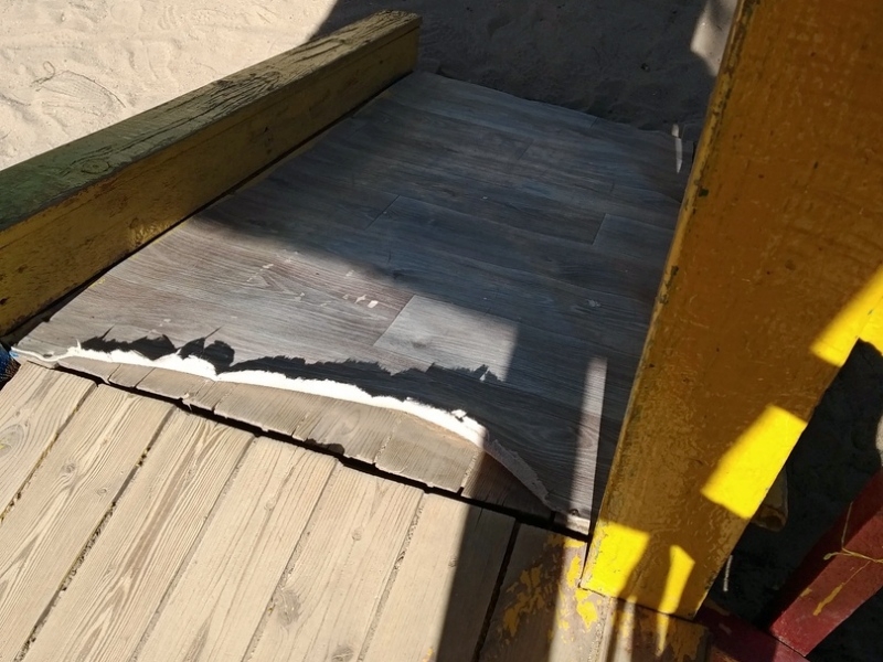"Везде гвозди торчат, крыши беседок еле держатся. На лестницах дыры такой величины, что можно ногу сломать. Это только на одном участке! А там почти везде так: саморезы торчат, с крыш беседок свисают рыхлые деревяшки, которые держатся на одном гвозде. На машинке сиденье отломано, осталась только узкая жердочка, можно упасть и сильно удариться. В общем, страшно ребенка сюда вести, площадки просто опасны", - рассказала женщина корреспонденту ИА "СеверИнформ".