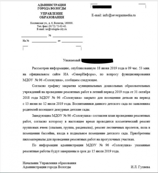 Ответ из Управления образования