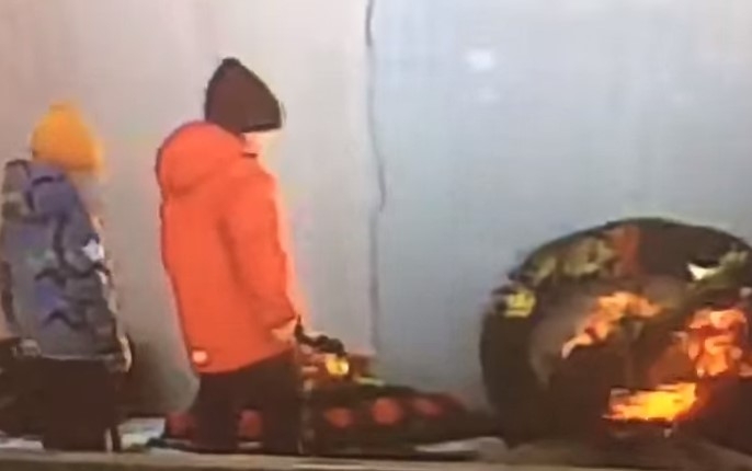 Взрослые почему-то оставили двух малышей баловаться на воинском мемориале. Сначала две женщины с детьми стояли на площади Славы. Потом дамы отлучились, а пакостники почувствовали себя свободно. Мальчики забросали пламя снегом и сбежали.