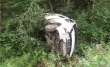 Водитель иномарки испугалась выбежавшего лося и врезалась в опору на обочине
