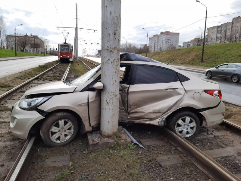 В Череповце иномарка врезалась в столб между трамвайными рельсами