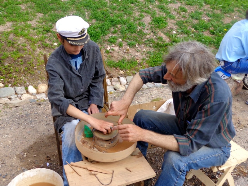 В ремесленной слободке С. Феньвеши, Н. Трубников и А. Гурин обучали гостей праздника гончарному мастерству; О. Пестерева рассказывала об изготовлении кухонной утвари из бересты, а Н. Кузнецова делилась секретами плетения коклюшечного кружева.